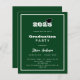 Una invitación moderna y de diseño para una fiesta de graduación. Tanto para él como para ella. Fondo verde, texto blanco y marco. Un gorro negro de graduación. 1 hoja = 1 borde impreso de invitación al borde.