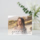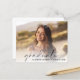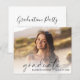 Elegante invitación para una fiesta de graduación amigable con el presupuesto, que incluye la foto del graduado con "graduado" en un guión moderno y su nombre y año de clase en simple tipografía. Al contrario, añada los detalles de la fiesta de graduación.