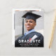 Moderna invitación de graduación económica e invitación a fiestas. La foto del graduado llena la parte delantera de la tarjeta, con "Graduado" revestido en negrita con una tipografía blanca mínima. Añada su nombre, colegio, universidad o año de clase en simple tipografía blanca. En la parte posterior, añada una foto adicional y los detalles del fiesta.
