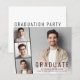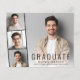 Invitación minimalista de graduación moderna y amigable con el presupuesto, e invitación de fiesta con la foto del graduado, con una tipografía simple, con una tipografía de tres fotos cuadradas más pequeñas y "Graduado", su nombre, colegio y año de clase. Añada los detalles de la fiesta de graduación al revés.