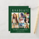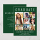 Moderna, elegante y económica invitación de graduación verde e invitación de fiesta con "GRADUATE" en la parte superior en grandes letras blancas, un collage de siete fotos y su nombre, año de clase y escuela en simple tipografía blanca. En la parte posterior, agregue los detalles de la fiesta de graduación.