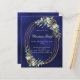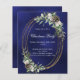 Un fondo azul marino, de colores desiguales, decorado con conos, bayas blancas y verdor. Un falso marco oval de oro. Personalice y agregue los detalles. 1 hoja = 1 borde impreso de invitación al borde.