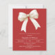 Para un fiesta Navidad con familia y amigos. Una carta elegante y sencilla decorada con un gran arco de color crema. fondo rojo. Personalice y agregue los detalles. 1 hoja = 1 borde impreso de invitación al borde.