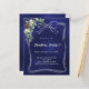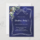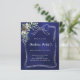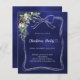 Para un fiesta Navidad con familia y amigos. Decorada con un arco blanco sencillo y a mano, con vegetación y un cono de pino. Personalice y agregue los detalles. Navidades fiesta con corazón. Un fondo azul marino, de color desigual. 1 hoja = 1 borde impreso de invitación al borde.
