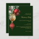 Elegante invitación de la fiesta de Navidades de negocios invita a su equipo a celebrar la temporada de vacaciones con esta elegante y moderna invitación a la fiesta de Navidades. Con un elegante fondo verde, el diseño está bellamente decorado con baubles de color rojo y oro festivo, vegetación y un cono de pino para un toque clásico. Personalízalo con los detalles del evento de tu empresa para crear una invitación profesional y sofisticada, perfecta para tu reunión de vacaciones corporativas. 1 hoja = 1 borde impreso de invitación al borde.