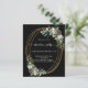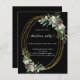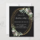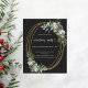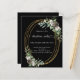 Un fondo de color negro decorado con conos, bayas blancas y verdor. Un falso marco oval de oro. Personalice y agregue los detalles. 1 hoja = 1 borde impreso de invitación al borde.