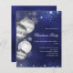 Para un fiesta Navidad con familia y amigos. De fondo azul marino, el color azul es desigual. Decorada con baudias de plata falsa. Personalice y agregue los detalles. 1 hoja = 1 borde impreso de invitación al borde.