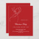 Para un fiesta Navidad con familia y amigos. Fondo rojo, y un reno de una línea abstracto blanco. Personalice y agregue los detalles. 1 hoja = 1 borde impreso de invitación al borde.