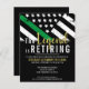 Este diseño de retiro incluye una bandera militar con rayas blancas y negras, y una delgada franja verde también. El texto de "La leyenda es agotadora" se sienta por encima del nombre del sargento retirado, capitán, soldado, teniente o general.