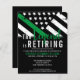 Este diseño de retiro incluye una bandera militar con rayas blancas y negras, y una delgada franja verde también. El texto de "La leyenda es agotadora" se sienta por encima del nombre del sargento retirado, capitán, soldado, teniente o general.