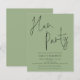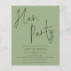 Fiesta del Hen Verde Sage. Un precio económico menor 4,5" x 5,6" alternativa. Disponible en un ALMACENAMIENTO DE TARJETAS SEMI-GLOSS de 110 lb que es la opción predeterminada (más grueso para las invitaciones), O UN ALMACENAMIENTO DE PAPELES DELGADOS SATIN FINISH DE 80 lb (ideal para los gabinetes). Los sobres son un extra opcional y son algo más grandes que el tamaño de la tarjeta. Este diseño moderno para sus invitados de la noche de Hen ha establecido un guión elegante para el encabezado principal en la parte superior y se puede personalizar fácilmente con sus detalles debajo. También puede cambiar el texto y los colores de fondo en ambos lados si lo desea a través de la opción Personalizar adicional.