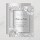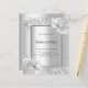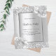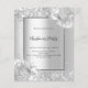Fondo de color plateado falso decorado con flores, flores y purpurinas de plata falsa, chispas. Personalice y agregue los detalles de su fiesta. Cartas negras. 1 hoja = 1 borde impreso de invitación al borde.