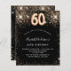 Una invitación moderna, elegante y glamurosa para una fiesta de cumpleaños número 60. Un fondo negro decorado con un falso purpurina. El nombre está escrito con un guión moderno de estilo con letras a mano de colores dorados. Personalice y agregue los detalles de su fiesta. El número 60 se escribe con un tipo de letra, guión.