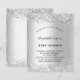 Para un Baby Shower elegante y de moda. Un falso fondo metálico plateado. Decorado con un falso purpurina. Personalice y agregue un nombre y detalles del fiesta. El nombre se escribe con un guión de estilo con letras a mano