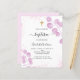 Una invitación moderna y elegante al bautismo. Un fondo blanco moda decorado con un eucalipto rosado y un purpurina falso. Personaliza y agrega tu foto del niño, nota de agradecimiento y nombre. Atrás: fondo rosa. 1 hoja = 1 borde impreso de invitación al borde.
