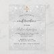 Una invitación de confirmación moderna, elegante y minimalista para niños y chicas. Fondo de aspecto metálico falso plateado decorado con polvo falso purpurina. Personalice y agregue un nombre y detalles. Letras de color negro.