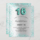 Una invitación moderna, elegante y glamurosa para una fiesta de 16 y 16 años de chica. Un fondo falso plateado, decorado con polvo purpurina de color verde azulado. Personalice y agregue su nombre y detalles del fiesta. El número 16 se escribe con un tipo de letra, guión.