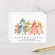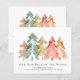 Invitación sencilla y elegante, con un presupuesto asequible, con un hermoso bosque acuático de pinos abstractos en verde mudo, rojo, dorado y naranja. En el frente, personaliza el texto "Nuestro Nuevo Cuello del Bosque", tu nombre de familia y tu nueva dirección. Al revés, puede personalizar su invitación con más detalle e incluir números de teléfono y direcciones de correo electrónico si lo desea.