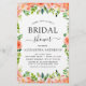 Invitaciones Coral, Floral de Peach y Blanco y Verdor Eucalyptus Botánico Primavera o Ducha Bridal de Verano - incluye tipografía de escritura hermosa y elegante con flores botánicas modernas y vegetación para la celebración especial del Día de la Novia para un Boda próximo.