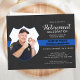 Celebre años de servicio dedicado e invite a amigos y familiares con esta invitación a la jubilación de la policía de la Línea Azul delgada Personalizado. Personaliza con nombre, título, años de servicio, domicilio. Esta invitación de la policía para el partido de retiro es perfecta para todos los fiestas de retiro de oficiales de policía y de retiro de las fuerzas del orden. Ver la recaudación de regalos de fiestas de retiro de la policía, favores del partido y suministros. DERECHOS RESERVADOS © 2020 Judy Burrows, Black Dog Art - Todos los derechos reservados. Invitación fotográfica de Fiesta de Jubilación de la Policía Presupuestaria