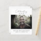 Honre la memoria de su ser querido con esta versión más asequible de nuestra Invitación a la Conmemoración del Funeral Minimalista Moderno. Con espacio para una foto preciada y detalles personales en la parte delantera, con detalles de servicio que se muestran elegantemente en la parte trasera, es una manera atemporal de reunir a familiares y amigos en recuerdo. Con una tipografía de escritura elegante y un diseño limpio, esta invitación también sirve como un agudo, celebrando una vida bien vivida. 💙