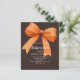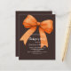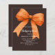 Un fondo de color marrón oscuro y muy bonito. Decorado con una gran proa naranja. Personalice y agregue los detalles del fiesta. 1 hoja = 1 borde impreso de invitación al borde.
