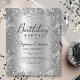 Presupuesto Elegancia moderna usando esta Moda Purpurina Plata y Metalizado Invitación de Cumpleaños 18. Un llamativo marco de purpurina de vidrio fino y brillante de color plateado alrededor de un fondo de Relieve metalizado metálico color gris plateado combinado con caligrafía manuscrita para crear un ambiente refinado y atemporal. Perfecto para los días 16, 18, 21, 30, 40, 50, 60, 70, cumpleaños o cualquier edad, este versátil diseño se puede adaptar a sus necesidades. ¡Contáctame para obtener ayuda personalizada o elementos coincidentes!