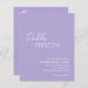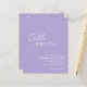 Espliego moderno / presupuesto púrpura todo en una invitación de boda con un diseño simple y mínimo con el nombre de la novia en un guión elegante y el nombre del novio en una fuente contemporánea sans serif. Debajo, en la esquina inferior derecha, están los detalles de los eventos en un diseño minimalista. La parte posterior tiene sus detalles adicionales y el código QR, por lo que puede omitir la tarjeta de gabinete y la tarjeta RSVP.