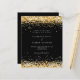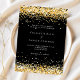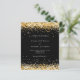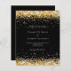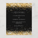 Una invitación moderna a la boda. Fondo negro decorado con un falso confeti de oro. Personalice y agregue sus nombres y detalles del boda. Letras de color blanco. 1 hoja = 1 borde impreso de invitación al borde.