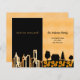 Una elegante y minimalista tarjeta de anuncio de mudanza de la vida de una ciudad a la vida rural. Oro negro y falso con un perfil urbano y una casa de campo con girasoles. Personalice y agregue su nueva dirección y mensaje a su familia y amigos.