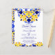 invitaciones de despedida de soltera mexicanas vintage con azulejos azules y amarillos, invitaciones de despedida de soltera económicas impresas, patrón de azulejos italianos mediterráneos, patrón de azulejos griegos azules Maiolica, tarjetas de invitación para despedida de soltera