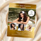 Crea tu propio collage de fotos único. Usa cuatro, cuatro de tus fotos favoritas. Personalice y agregue un nombre y detalles del fiesta. Fondo falso de aspecto dorado, texto blanco. 1 hoja = 1 borde impreso de invitación al borde.