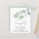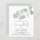 Una alternativa de presupuesto con buen valor por dinero en un tamaño más pequeño de 4,5 x 5,6” semi brillo 110lbs de peso, que es de un grosor similar a una postal (sin embargo no es adecuada para usar como postal). POR FAVOR TENER EN CUENTA que hay UNA invitación por hoja. Invitación para una fiesta de noche de boda con estilo Artsy Eucalyptus Script. Un conjunto de estilo de escritura a mano para "Evening Party" y el resto del texto que puedes personalizar fácilmente. Una rama de follaje de salvia de acuarela está en la parte superior.