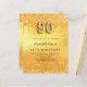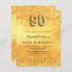 Una invitación moderna, elegante y glamurosa para una fiesta de cumpleaños número 90. Un fondo falso de aspecto metálico dorado con goteos falsos de purpurina, pinturas de goteo. El nombre está escrito con una escritura de estilo con letras a mano moderna. Personalice y agregue los detalles de su fiesta. El número 90 se escribe con un tipo de letra, guión.