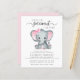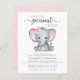 Una linda y económica ducha de bebé por invitación por correo con "A Sweet Little Peanut Is On Her Way" escrita en una mezcla de tipografía gris y moderna y escritura elegante, y una acuarela rosa pastel de un elefante de una bebé. Personalice el nombre y la ducha de la madre por correo electrónico en una tipografía gris simple.