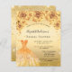 Una invitación moderna, elegante y glamurosa para una ducha de novias. Un fondo de oro falso con polvo falso purpurina de oro, un vestido y rosas, florales. El nombre está escrito con una escritura de estilo con letras a mano moderna. Personalice y agregue los detalles de su fiesta.