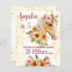 Caballo de palomino con girasoles y flores rosadas floridas niñas de cumpleaños plantilla de invitación presupuestaria para fiesta de cumpleaños. Hermoso retrato de caballo acuarela, agradable para los amantes del caballo.