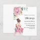 Una invitación moderna, elegante y glamurosa para una fiesta de 15 años en Quinceañera. Un fondo blanco adornado con una gran rosa rosa, un chica vestido de bata. El nombre está escrito con una escritura de estilo con letras a mano moderna. Personalice y agregue los detalles de su fiesta. 1 hoja = 1 borde impreso de invitación al borde.