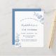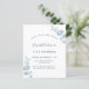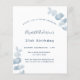 Un fondo blanco, decorado con estropajes de eucaliptos azul oscuro, estribos. Personalice y agregue un nombre y detalles del fiesta. Fondo azul polvoriento.