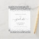 Presupuesto 2024 Graduación Invitación Purpurina Plata. Un precio económico menor 4,5" x 5,6" alternativa. Disponible en un ALMACENAMIENTO DE TARJETAS SEMI GLOSS 110 lb que es la opción predeterminada (recomendada para invitaciones, similar al espesor de una postal), O UN ALMACENAMIENTO DE PAPEL DE LADO SATIN FINISH 80 lb (ideal para los gabinetes). Los modernos bordes falsos de purpurina se encuentran en la parte superior e inferior de ambos lados. Graduado está en un guión elegante con cambios. Personalice fácilmente el texto a sus propios requisitos, incluso al revés.