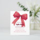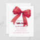 Un fondo blanco, decorado con un gran arco rojo. Personalice y agregue un nombre y detalles del fiesta. 1 hoja = 1 borde impreso de invitación al borde.