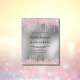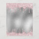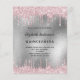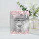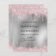 Una invitación moderna, elegante y glamurosa para una fiesta de 15 años en Quinceañera. Un falso fondo metálico plateado con un elegante goteo en purpurina de imitación rosada, con pinturas que gotean. El nombre está escrito con una escritura de estilo con letras negras y modernas. Personalice y agregue un nombre, edad y detalles del fiesta.