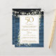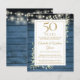 Con delicadas ilustraciones de vegetación de jardín campestre en acuarela y luces de cuerda en un fondo de paneles de madera azul, esta invitación rústica chic se puede personalizar con la información de su celebración de aniversario de 50 años. Diseñada por Thisisnotme©
