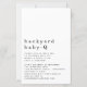 Un tamaño mayor de 5,5" x 8,5" a un precio económico, en una BOLSA DE TARJETAS SEMI GLOSS de 110 lb, ideal para invitaciones, aproximadamente con el mismo espesor que una postal, o un elegante stock LINEN de 110 lb - para un lujo, ligeramente más delgado a un gran valor. Esta alternativa de tamaño de presupuesto también está disponible en otras opciones de papel. El papel FELT de 100 libras es de color buff, NO blanco, por lo que añade un toque rústico. El material de papel MATTE 80lb es blanco brillante, para impresión crujiente, ideal para menús y programas, mientras que el papel SATIN de 80 libras es delgado y liviano, ideal para gabinetes. TENGA EN CUENTA QUE LOS ENVELOPES OPCIONALES SON UN POCO MÁS GRANDES EN TAMAÑO A 6.75" x 9" aprox. Sencillo Bebé patio trasero Q BBQ Invitación a ducha. Mucho espacio blanco para un estilo contemporáneo. La cabecera de la ocasión es grande en una elegante minúscula con los detalles en la parte inferior. Personaliza fácilmente el texto a tus propios detalles.