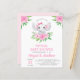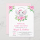 Personalice este Baby Shower virtual de color rosa tropical floral azul azul de la gérnova bebé elefante o invitaciones de rociado de bebé sobre fondo blanco con su mensaje y detalles. Esta invitación a la moda incluye flores rosas de color rosa y vegetación botánica moderna con tipografía de escritura linda y elegante para la celebración especial de la Madre a Ser.