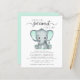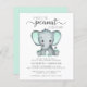 Una linda y económica invitación a bañarse en una ducha virtual neutra de género con "A Sweet Little Peanut Is On Your Way" (se puede cambiar a "His" o "Her" way) escrita en una mezcla de tipografía gris suave y escritura elegante, y una acuarela verde menta pastel de un elefante bebé. Personalice el nombre de la futura madre y los detalles de la ducha en una simple tipografía gris.