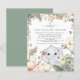 Un precio económico menor 4,5" x 5,6" alternativa. Disponible en un ALMACENAMIENTO DE TARJETAS SEMI-GLOSS de 110 lb que es la opción predeterminada (más grueso para las invitaciones), O UN ALMACENAMIENTO DE PAPELES DELGADOS SATIN FINISH DE 80 lb (ideal para los gabinetes). Los sobres son un extra opcional y son algo más grandes que el tamaño de la tarjeta. Para aquellos momentos en los que no es posible estar juntos en persona, un Baby Shower virtual es una gran alternativa. Este diseño tiene una linda madre bebé y su elefante bebé con flores y follaje y texto fácilmente personalizado. En la parte posterior hay un fondo verde sabio que sirve de coordinación. También puede cambiar las fuentes y los colores del texto si lo desea a través de la opción Click to Personalizar Further (Hacer clic en más ), así como los colores de fondo de cada lado.