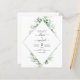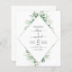 Eucalyptus Greenery Invitaciones a la Boda de Primavera de las Acuarelas Geométricas Botánicas y Verdes y Oro sobre el fondo blanco - incluye una tipografía de escritura hermosa y elegante con hojas botánicas modernas y vegetación para la celebración especial del Día de la Boda.
