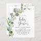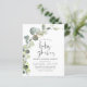 Presupuesto Eucalyptus Greenery Suculent Botanical Watercolor Primavera Género Neutral Baby Boy o Baby Girl Shower Invitaciones sobre fondo blanco - incluye hermosa y elegante tipografía de escritura con hojas botánicas modernas y vegetación para la celebración especial de Madre a Ser.