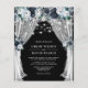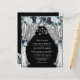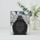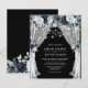 Baratas y elegantes invitaciones a bodas navales con un fondo negro de pizarra de moda que se puede cambiar a cualquier color, flores rústicas de color azul boho, luces de cuerda y un moderno patrón de boda.